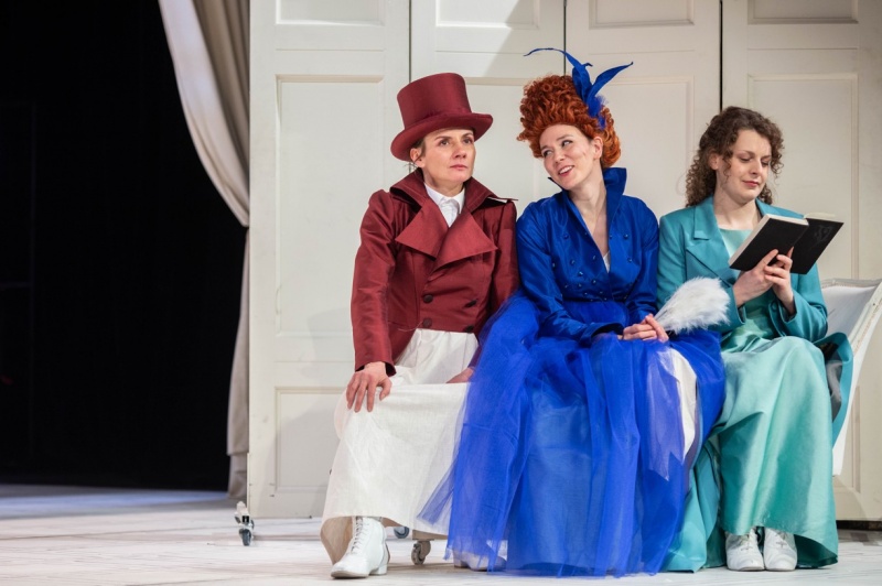 Každá z hereček ztvárňuje hned několik postav, včetně těch mužských. Diváci tak sledují svižnou hereckou štafetu plnou rychlých proměn, nadsázky a situační komiky, která si s původní předlohou hravě pohrává, aniž by ztratila její podstatu.