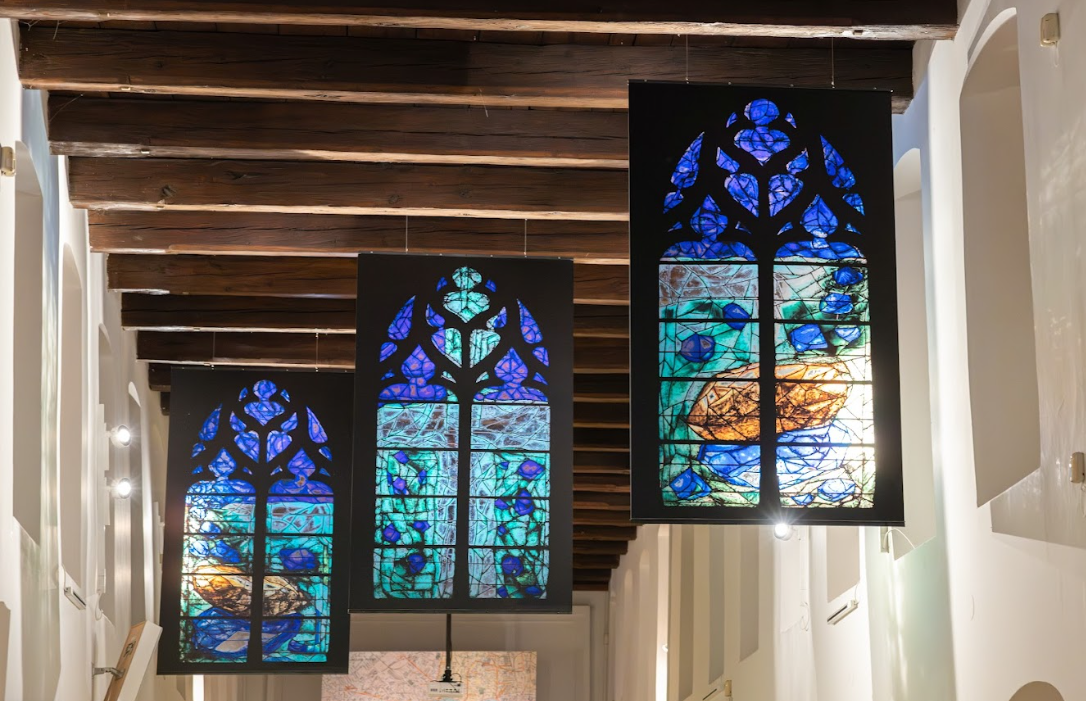 Na první Šímovu plzeňskou výstavu odkazují skici vitráží ze šedesátých let 20. století, navrhovaných pro Vřídelní kolonádu v Karlových Varech, které nově doplní návrhy vitráží pro kostel sv. Jakuba v Remeši, které byly na rozdíl od Karlových Varů realizovány.