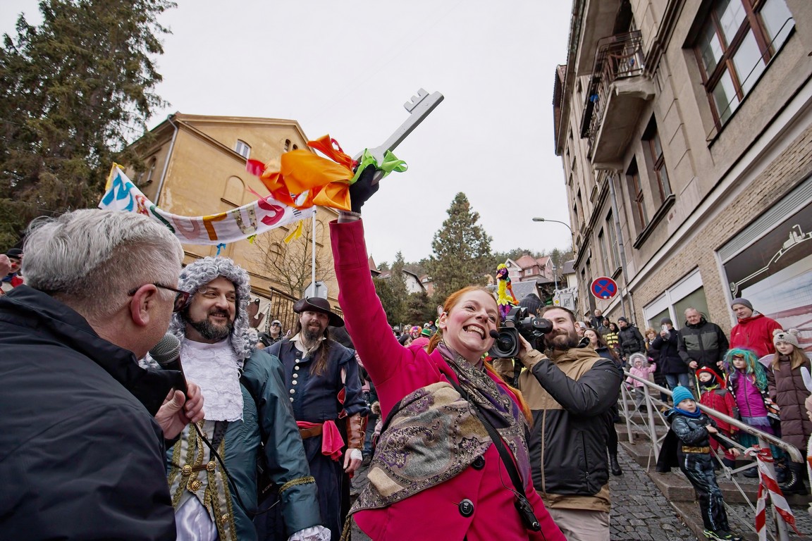 Po programu v zoo se pozornost přesunula do ulic. Oblíbený masopustní průvod v Děčíně měřil 2,3 kilometru a vedl jej nazdobený traktor. Symbolickým momentem bylo předání klíčů od města, které davu vydal primátor Jiří Anděl.
