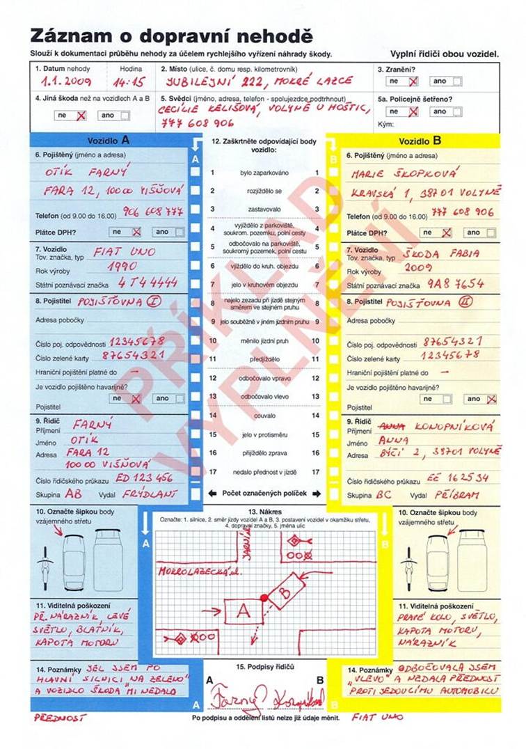 V takovém případě se nehoda zaznamenává pomocí záznamu o dopravní nehodě, takzvaného euroformuláře. Ten je možné vyplnit v papírové podobě nebo online. Řidiči si musí vzájemně ověřit totožnost, vyměnit údaje o vozidlech a pojištění, nafotit místo nehody i poškození a vše následně nahlásit své pojišťovně.