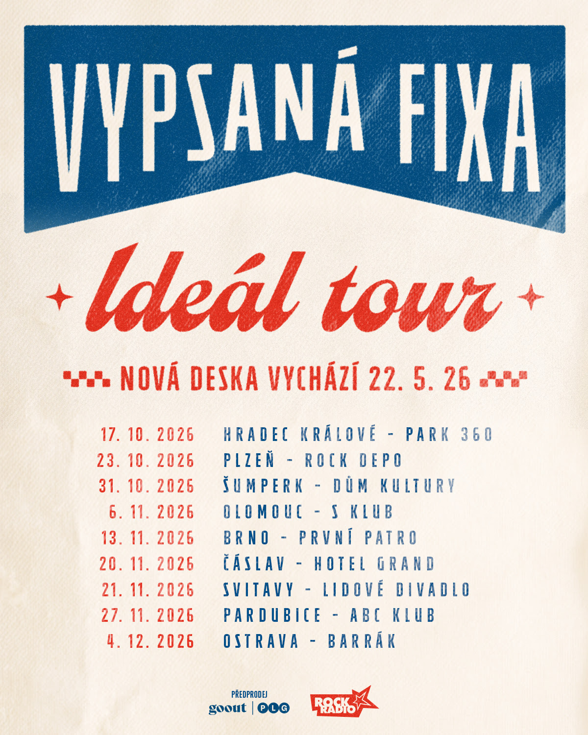 Společně s vydáním desky se kapela chystá i na podzimní koncertní šňůru, která zavede Fixu do řady českých měst včetně Hradce Králové, Brna, Ostravy nebo Pardubic.