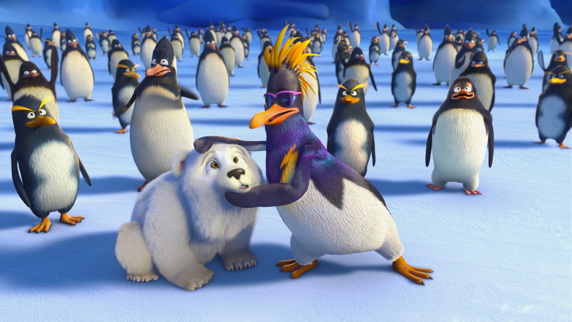 Když se na slepičí farmě jednoho dne objeví neobvyklí návštěvníci - trojice tučňáků a malé lední medvídě, místní zvířata musí spojit síly, aby novým kamarádům...